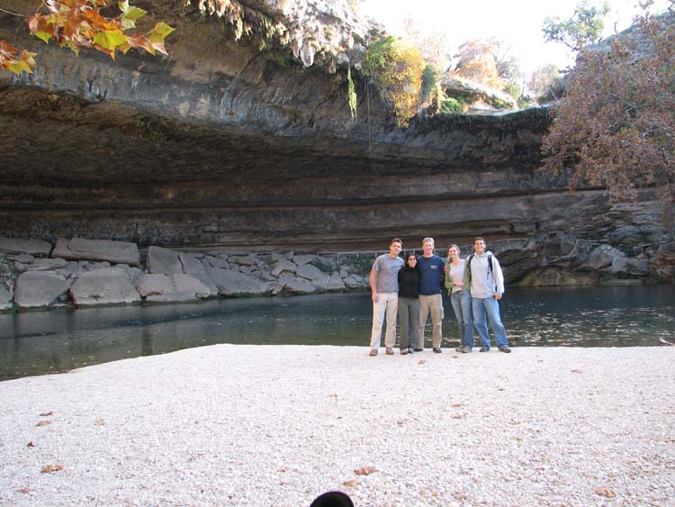 We certainly didn’t spend the whole time there biking; there are hundreds of other things to do in Austin. Ritu flew down for the weekend and we commenced a weekend of fun, food and adventure. Ritu and Kim hung out at Barton Springs while the (dumb) boys tried to swim a whole lap of the pool. That didn’t go so well. After swimming/walking the length of the pool, we tried to show off on the diving board for the girls, who didn’t really care, as usual. Later, we engaged in a four way battle for second place playing Boggle (first place always goes to Ritu. Damn that girl can spell!) That night was the big night out, and we headed down to 6th street, the center of going out in Austin. They don’t joke around down there, everything really is bigger. They closed off the whole street and hundreds of people were wandering around from bar to bar. At least half the bars had (good) live music, and the rest were fun clubs or chill hang out spots. We ended up in Pete’s Dueling Piano bar, where we all sang along to Jimmy Buffet, John Mellencamp, Sublime, Johnny Cash and a whole variety of other stuff. All of sudden it was 1:30 am, and time to head home. The street was still packed, but we’re all old farts now and needed to go home and drink some Metamucil. The next day we had a huge pancake and French toast breakfast and moaned about the lack of sleep. We finally kicked ourselves into gear and headed out to Hamilton pool. The ½ mile “hike” in led to a big sunken pool with deep blue water and ferns hanging from the roof. Nate, Matt and I had a cold swim across the pool just to prove how dumb we really are, which the girls already knew.