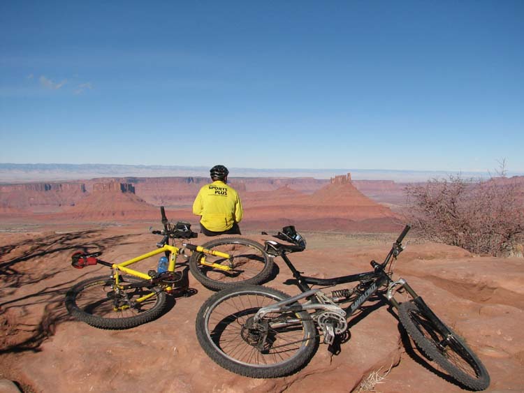 Most people that know Nate or I would certainly agree that we like to mountain bike. Heck, half this trip was supposed to be all mountain biking. I only own three bikes, Nate has four. So it would be a safe assumption that we either a) spend too much money on gear or b) really like to bike. Now, one of the things that you learn after getting into mountain biking is that “you have to go ride Moab.” Nate, being the adventurous one, had already fulfilled that requirement. I, however, was still incomplete in my development as a mountain biker and intelligent adult. Well, I am finally complete. As a mountain biker, not that adult nor intelligent part yet.