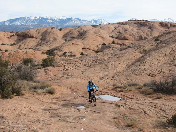 Once we were done with the infernal activity called walking, we thankfully exchanged our powerwalking shoes and weights for bikes. This time around, we rode the Slickrock trail, which is the most famous trail in Moab. The whole ride weaves up, down and around the petrified sand dunes just above town. The rock surface gives you amazing traction, allowing you to ride up and down things that would normally be impossible. The trail designers took this into account by going straight up the face of every little mound they could find. It’s like interval training to 12 miles! Stand up and sprint up a hill, coast down for 2 seconds, repeat. After brutalizing my quads learning to Telemark two days prior, I thought I was going to cramp on every hill. Even so, it was a ton of fun and something I had never done. We only saw three other people until the very end of the trail, when a rabid group of at least 10 bikers came rolling by. When we got back to the parking lot we saw they were driving a full size Ford van, converted to a dually and towing a 35’ travel trailer, with spaces for all of their bikes. Thoroughly castrated by their superior vehicle, we wimpered on back to our now-less-manly van and dreamed of four wheel drive conversions and 44” mud tires. All that was left then was to pack up and head for Portland, 1000 something miles away.